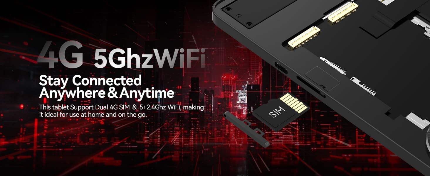 4G SIM Card and Wi-Fi Support: Stay connected anywhere and anytime on this Android 14 tablet 11 Inch.