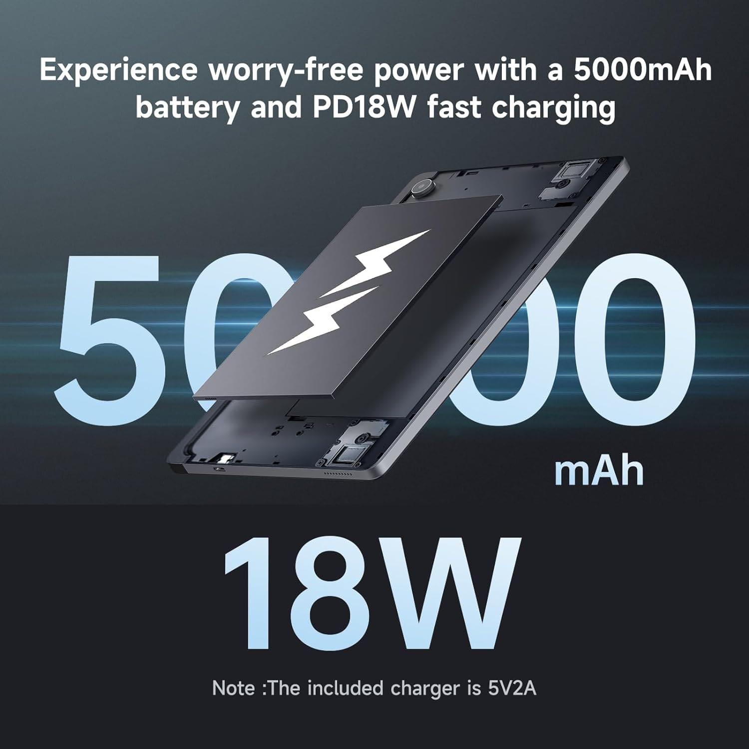 The PD 18W fast charging enables you to quickly recharge your tablet. Please note that the included charger is 5V2A and the PD 18W charger is not included.