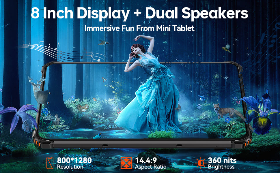 Powerful Android 12 Mini Tablet 8 Inch HD Display: This OUKITEL RT3 Full Touchscreen Android Tablet features the best 8-inch HD display size.